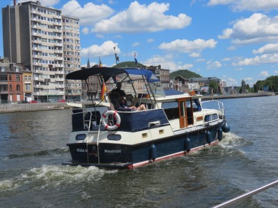 Schon bald näherten wir uns der Schleuse Lannaye. Das es uns im letzten Jahr immer mehr Richtung Norden oder Westen getrieben hatte, kennen wir diesen Bereich nur als Baustelle. Nun ist aber die neue Schleuse Nr 4 bereits seit über einem Jahr betriebsbereit und wir waren sehr gespannt. Leider zeigte uns von Weitem schon ein Doppelrot, dass die neue nicht in Betrieb war. Bedient wurde die Nr.3, die Schleuse also, die bei der Bergfahrt nicht immer ganz einfach ist. Wie wir mittlerweile wissen, sollte man bei der Bergfahrt tunlichst nicht an Backbord festmachen. Da entstehen nämlich durch das hineinströmende Wasser so kräftige Strudel, dass das Boot kaum am Platz gehalten werden kann. Wir meldeten uns per Funk an und erhielten die Anweisung, hinter dem Berufsschiffer einzufahren.